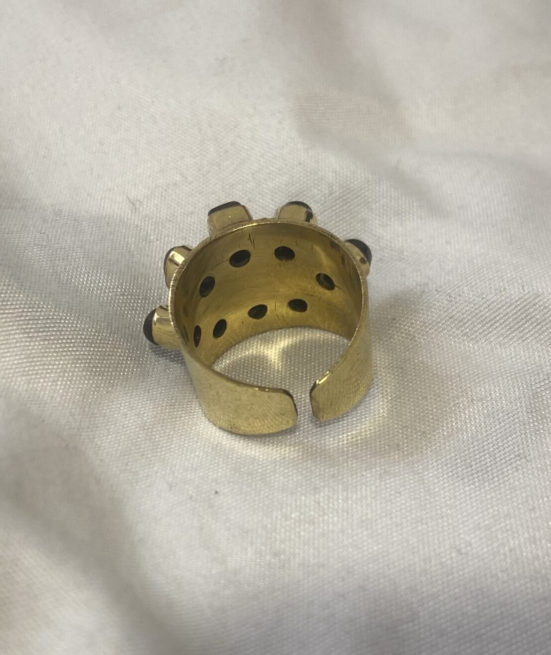 Anillo de latón con 8 piedras de colores – Ajustable y artesanal