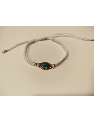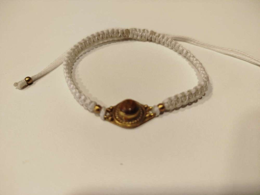 Pulsera de Macramé Blanco, fina y elegante, con una pietra central de 8 mm Marrón.
