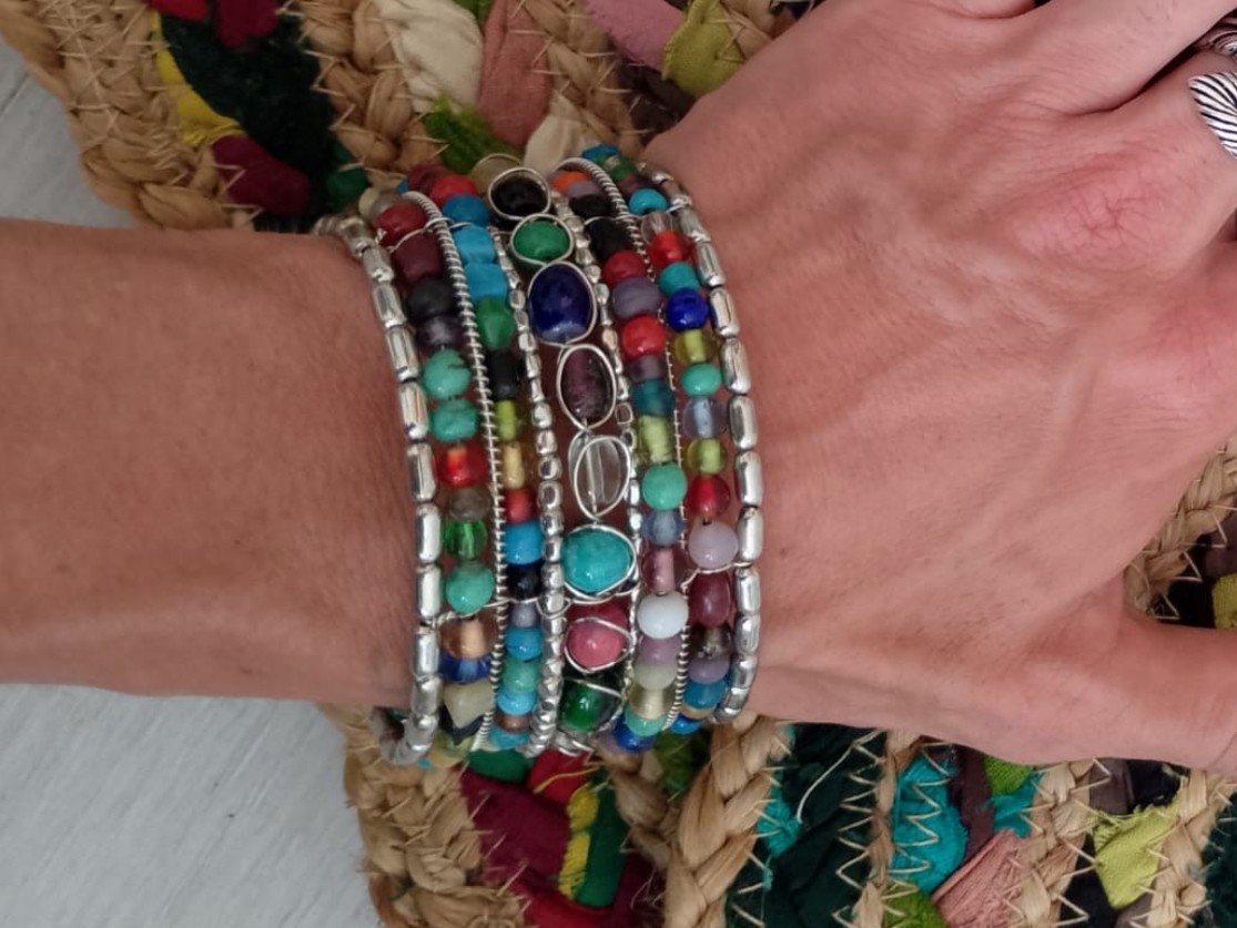 Inspirados en los bazares de la India, estos brazaletes traen consigo historias de culturas lejanas y manos sabias.
