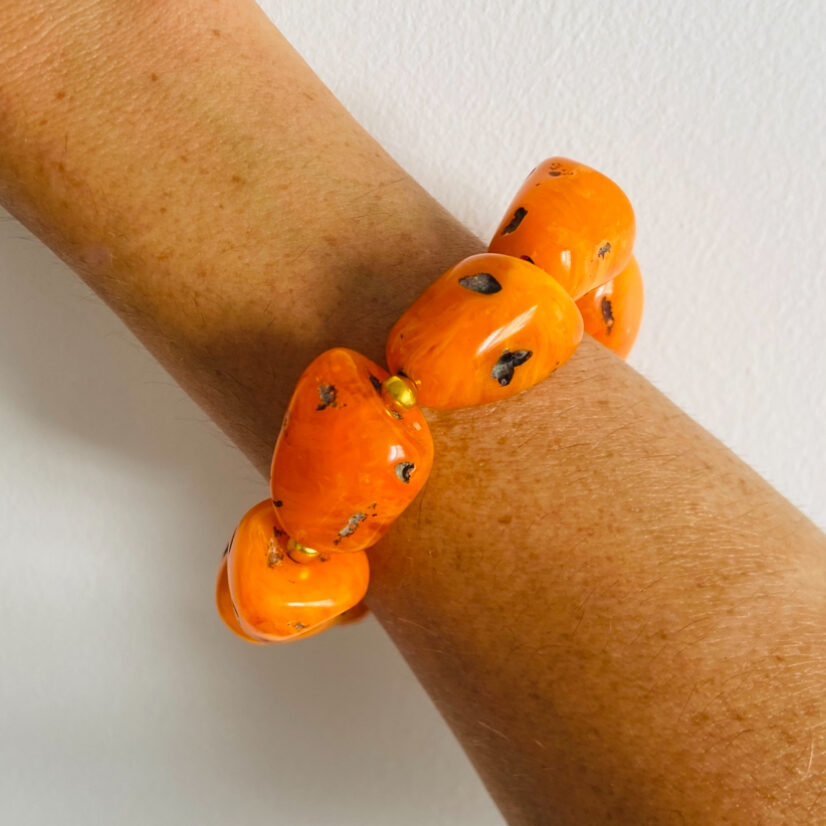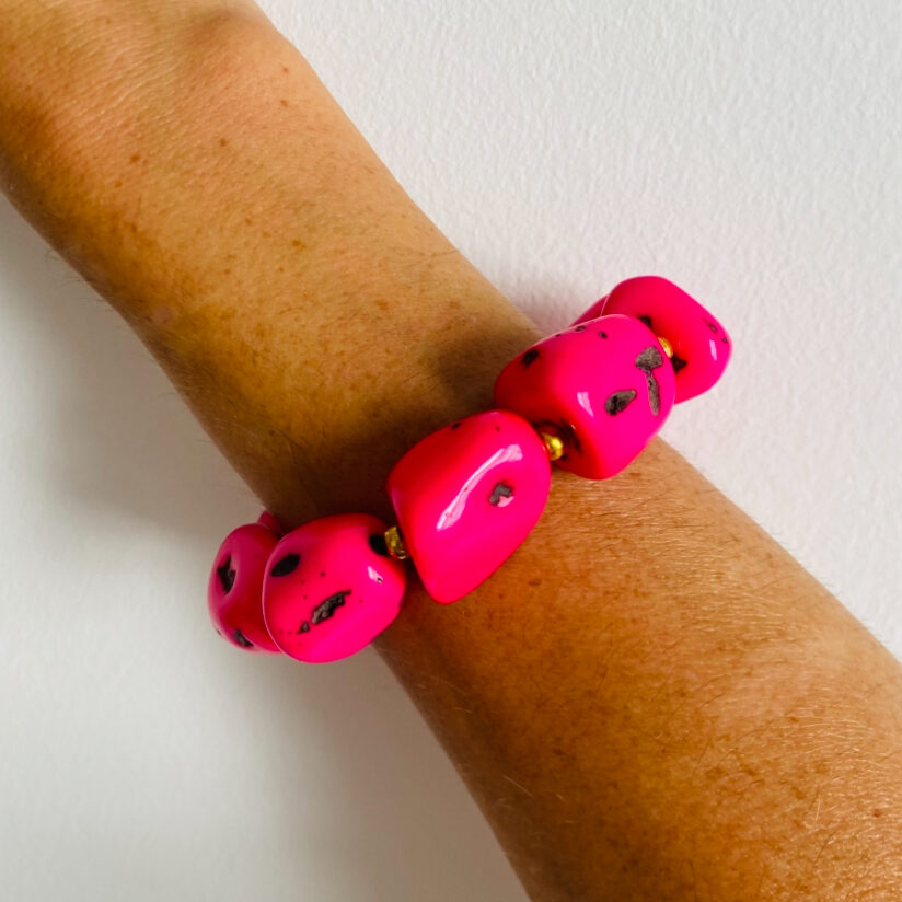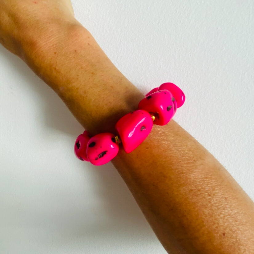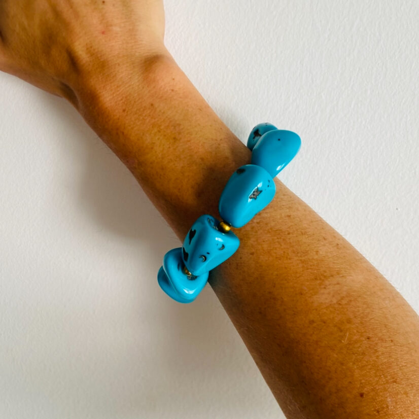 El brazalete elástico con piedras grandes es un accesorio artesanal lleno de fuerza y estilo.