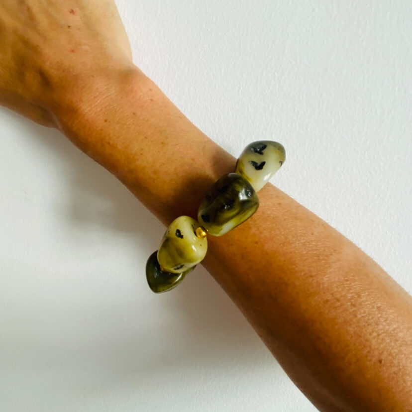 Brazalete elástico con piedras grandes y naturales. Artesanal, hecho a mano en India. Cómodo, versátil y boho chic.