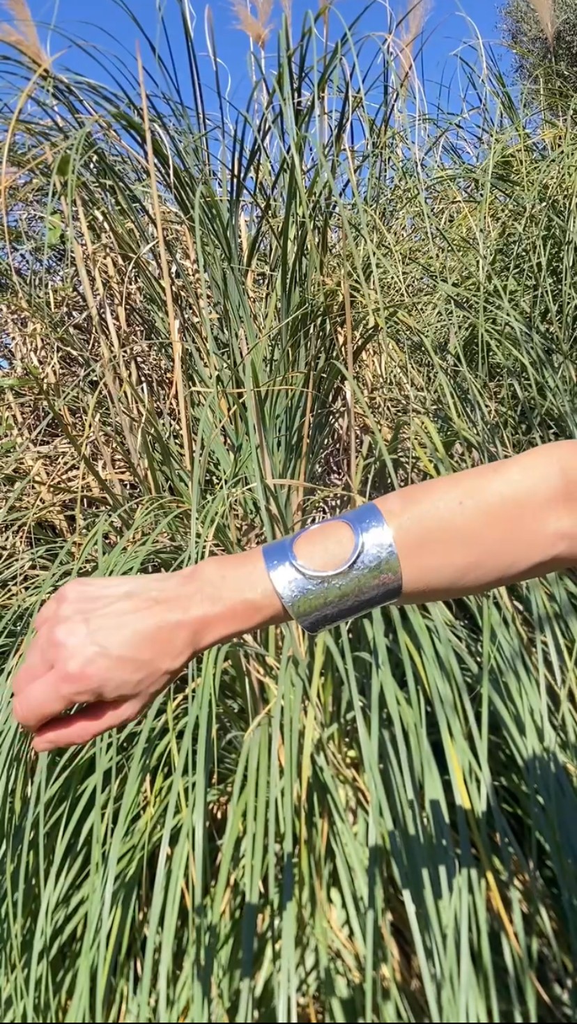 El Brazalete Ethereal encarna la perfecta armonía entre la artesanía tradicional y el diseño contemporáneo. Su estructura rígida con baño de plata destaca por sus grabados geométricos, que crean un sofisticado juego de luces y sombras al dejar entrever la piel.