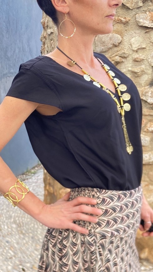 La Camiseta Essential es la prenda ideal para quienes aman la sencillez con un toque de estilo. Hecha de 100% rayón, presenta un escote en V más pronunciado en el frente y más discreto en la espalda, aberturas laterales y bordes redondeados para un ajuste fluido y cómodo. Disponible en varois colores. Hecha a mano en India por expertos artesanos.
