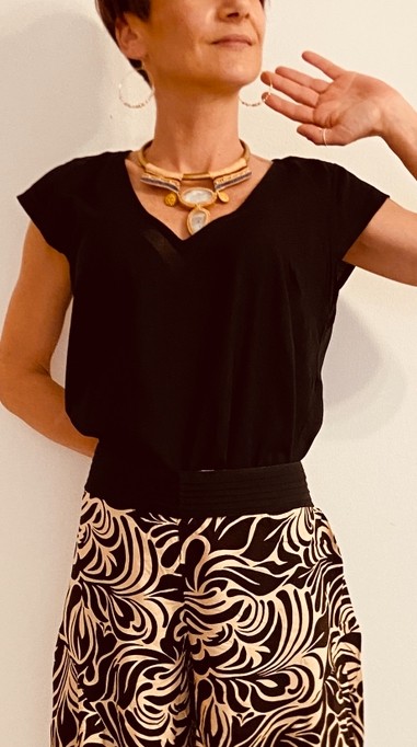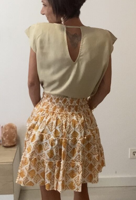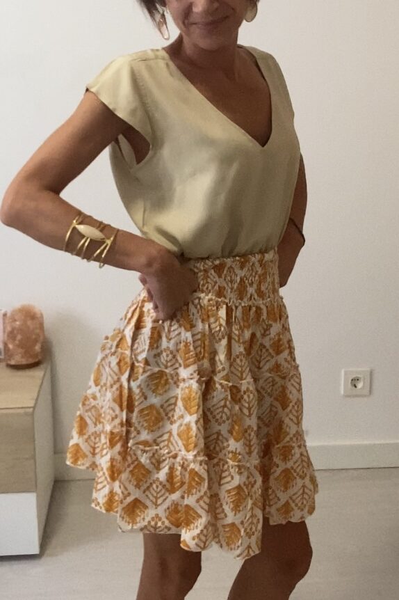 Hecha de 100% rayón, ofrece un ajuste fluido y cómodo, ideal para llevar todo el día. Perfecta tanto para un estilo casual con jeans y zapatillas, como para un look más boho con pantalones anchos y sandalias.