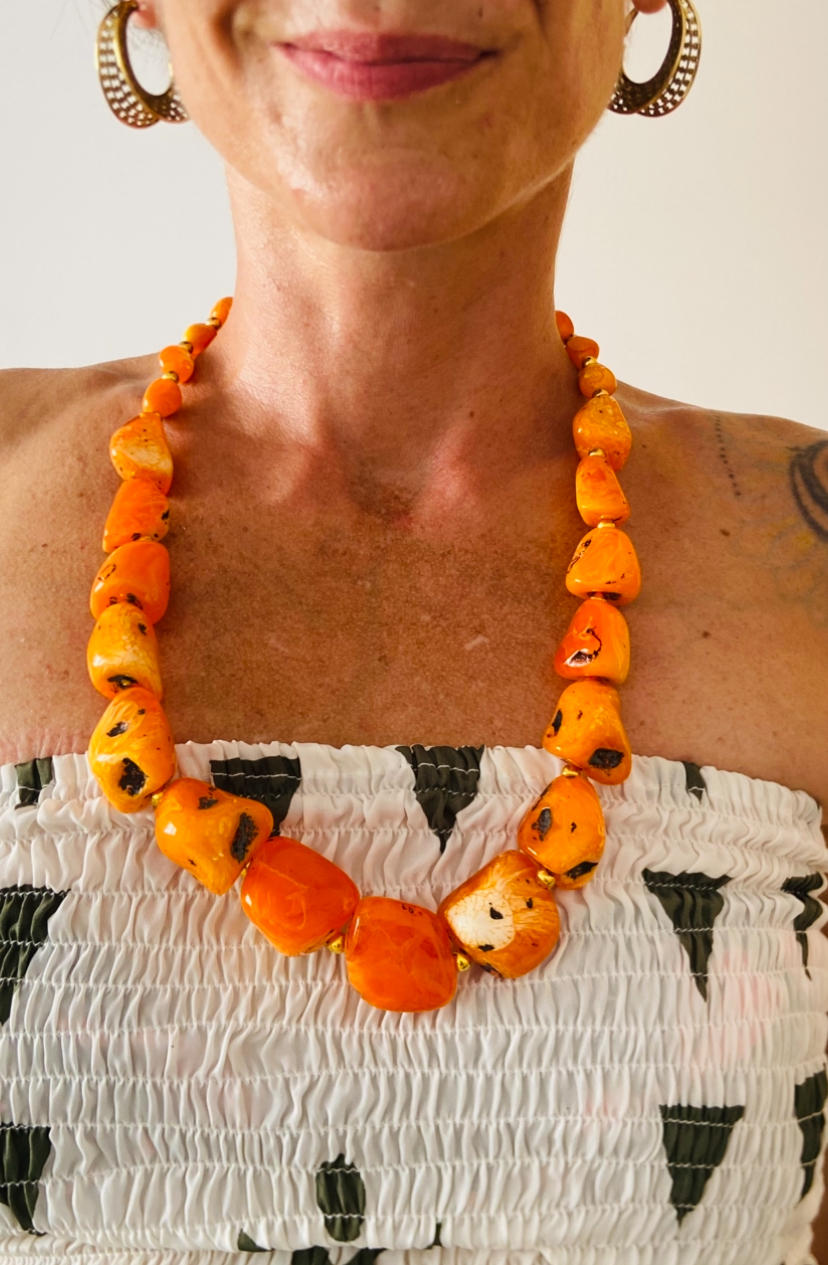 Este collar artesanal con piedras grandes es un accesorio bohemio que aporta fuerza y color a cualquier conjunto.