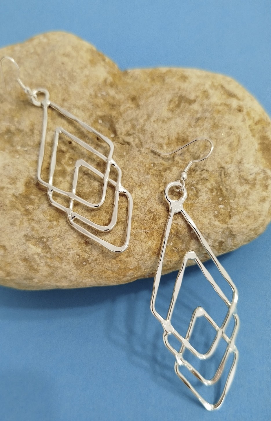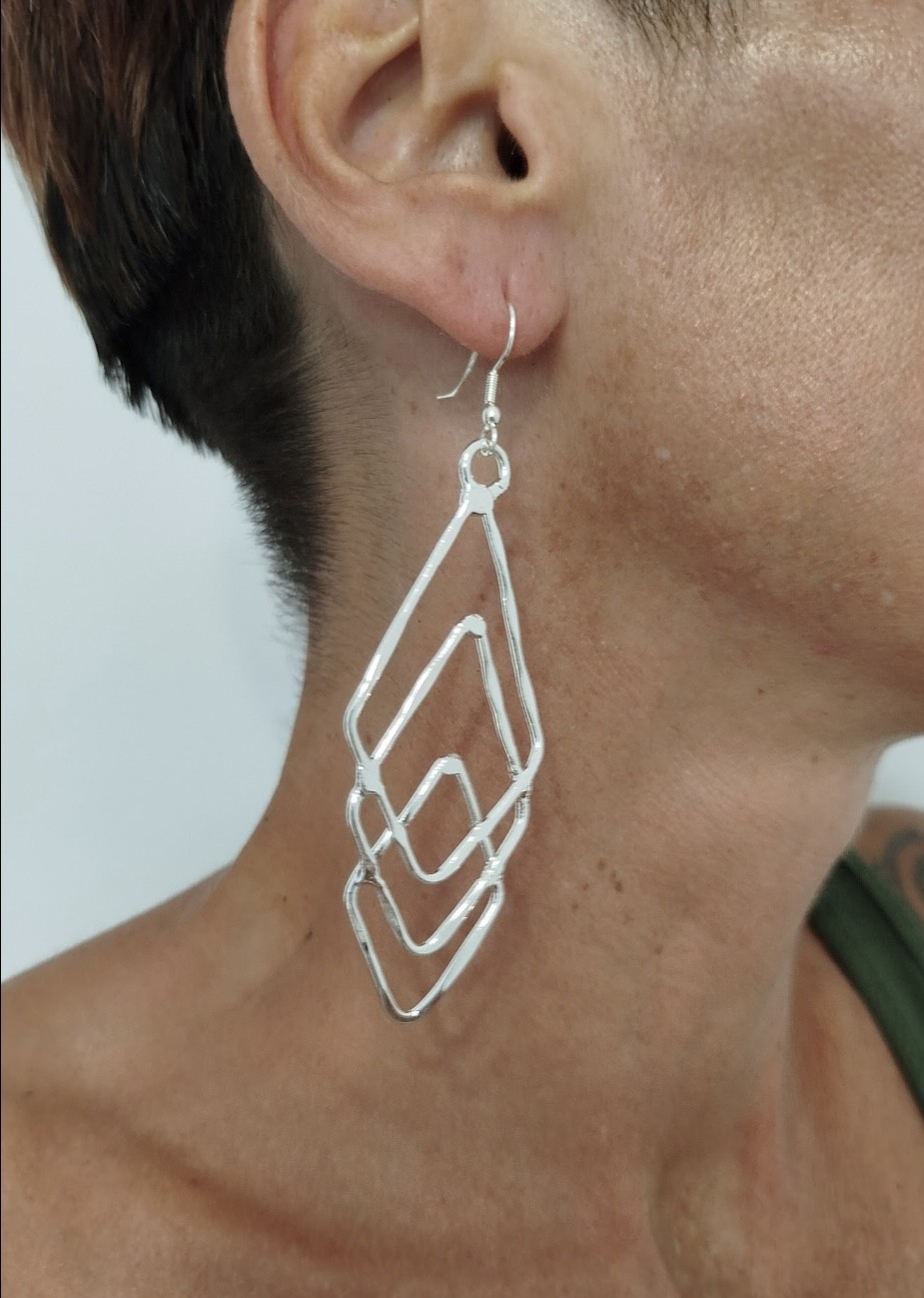 El diseño de tres rombos superpuestos añade un toque de modernidad y sofisticación, haciendo de estos pendientes la opción perfecta para eventos especiales y noches elegantes.