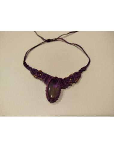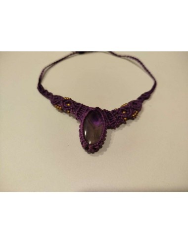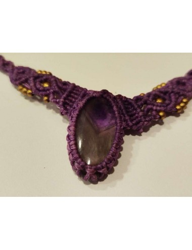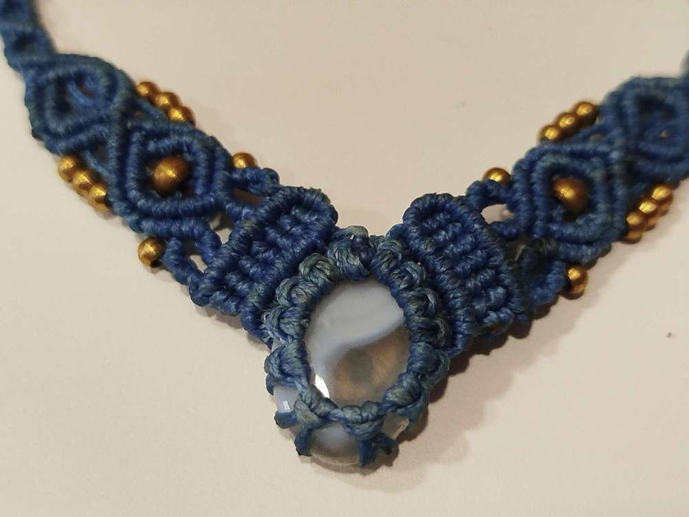 Este collar corto de macramé es una obra maestra de la artesanía, elaborado con cuidado y atención al detalle.