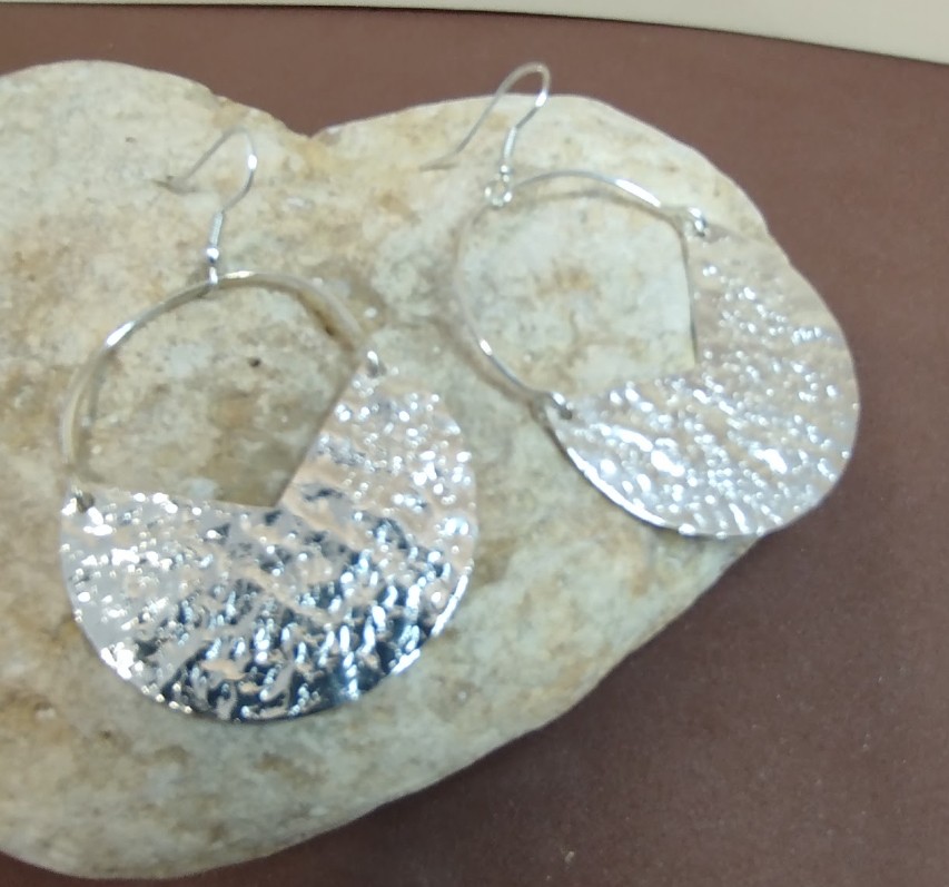 Realizados en baño de plata, estos pendientes presentan un círculo con una discrepancia única: tres cuartos del círculo están llenos y un cuarto se deja vacío, creando un efecto visual intrigante y moderno.