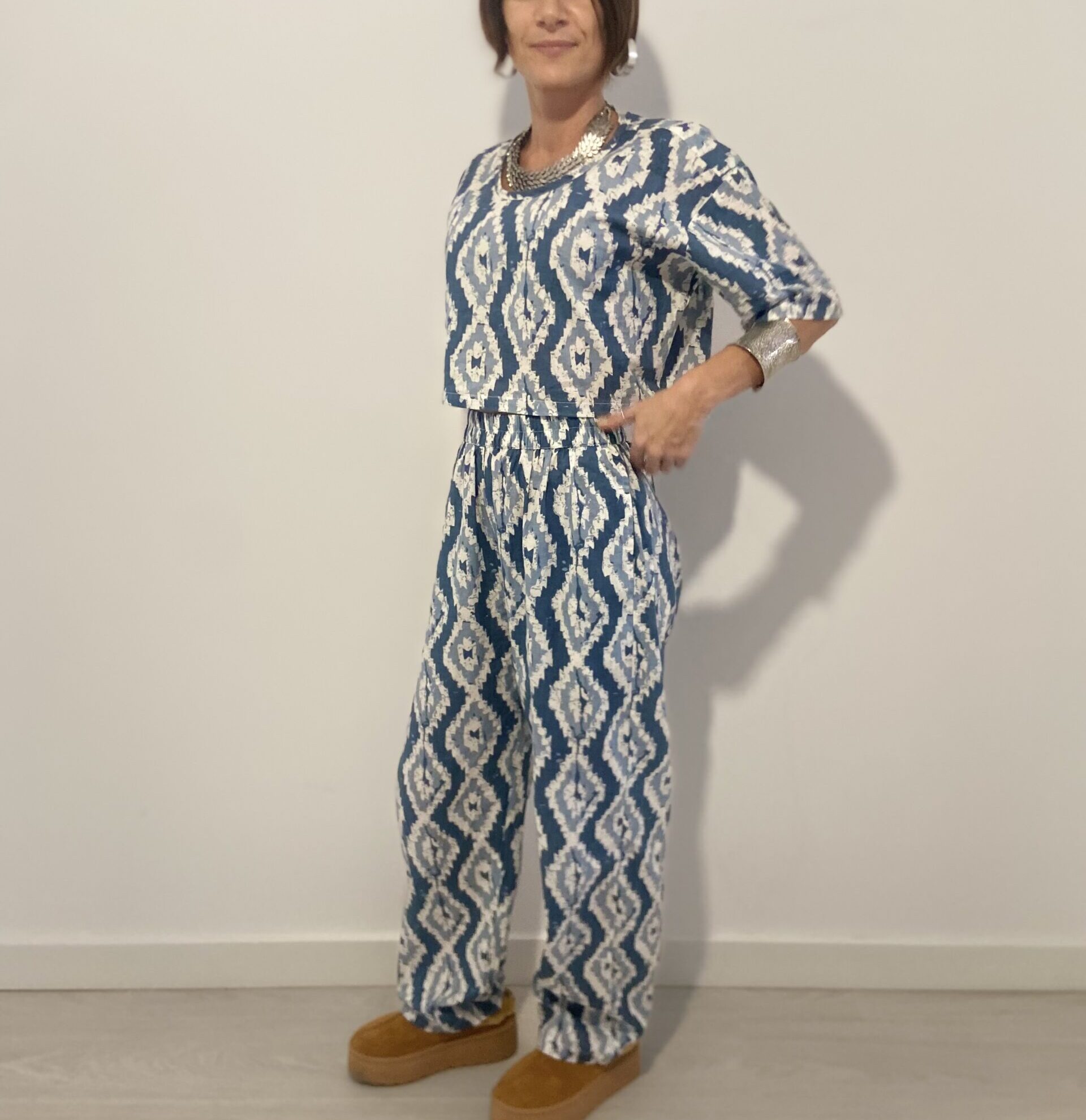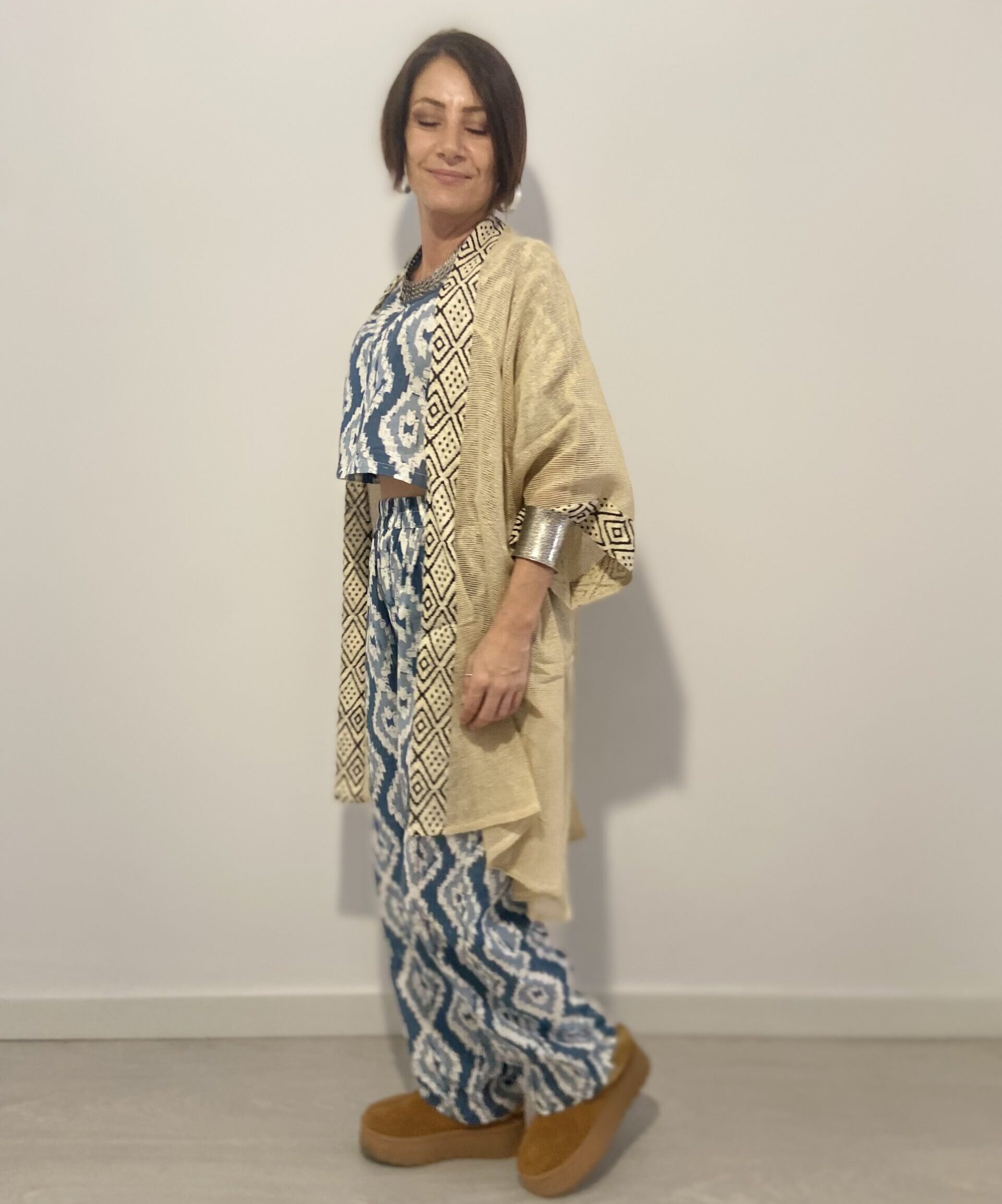 Questo insieme boho artigianale è confezionato in cotone 100% naturale , ideale per chi cerca comodità, stile e autenticità.