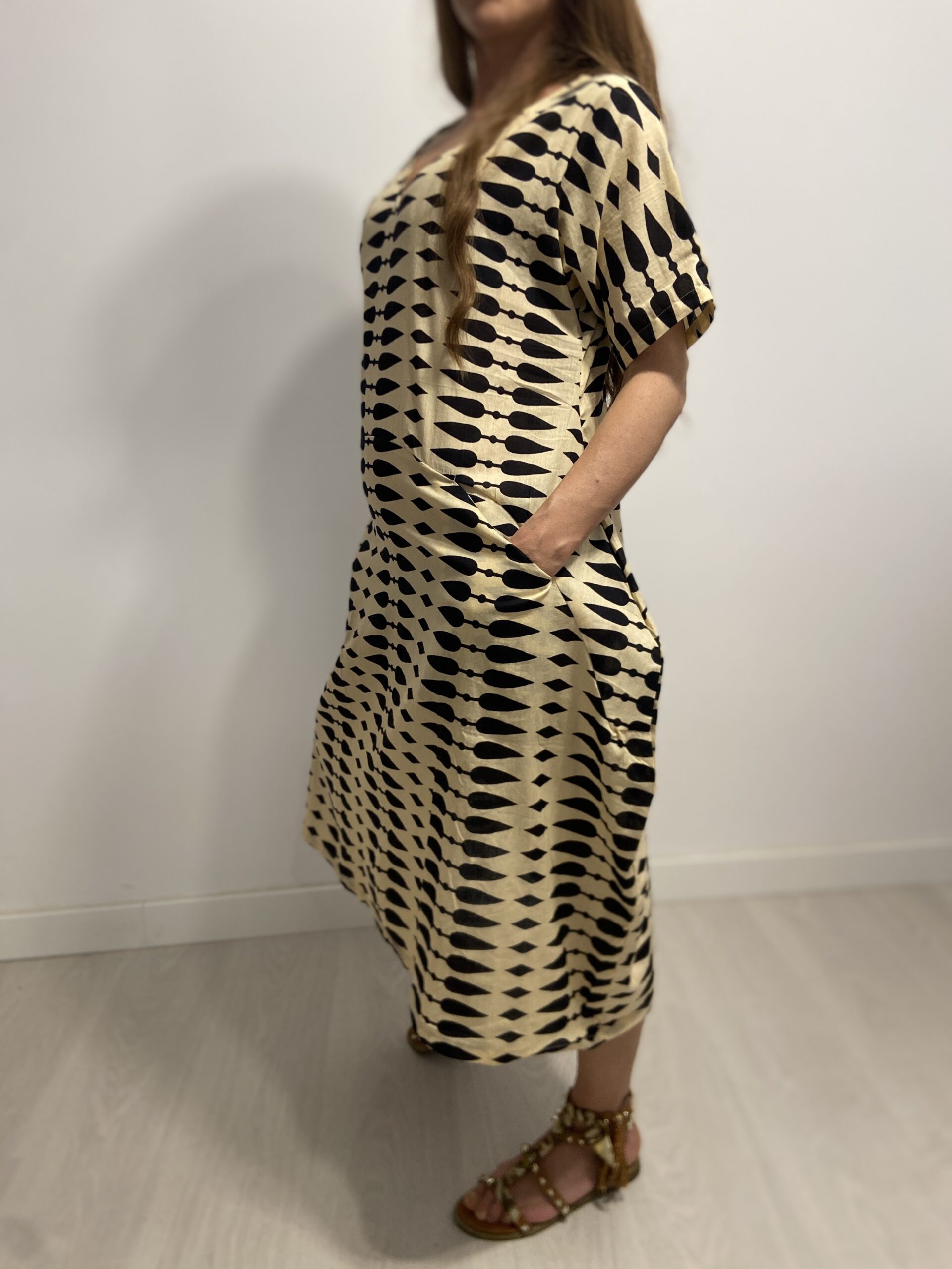 Este vestido, de largo medio hasta la cintura, combina practicidad y estilo, permitiéndote resaltar lo esencial sin renunciar a la elegancia.