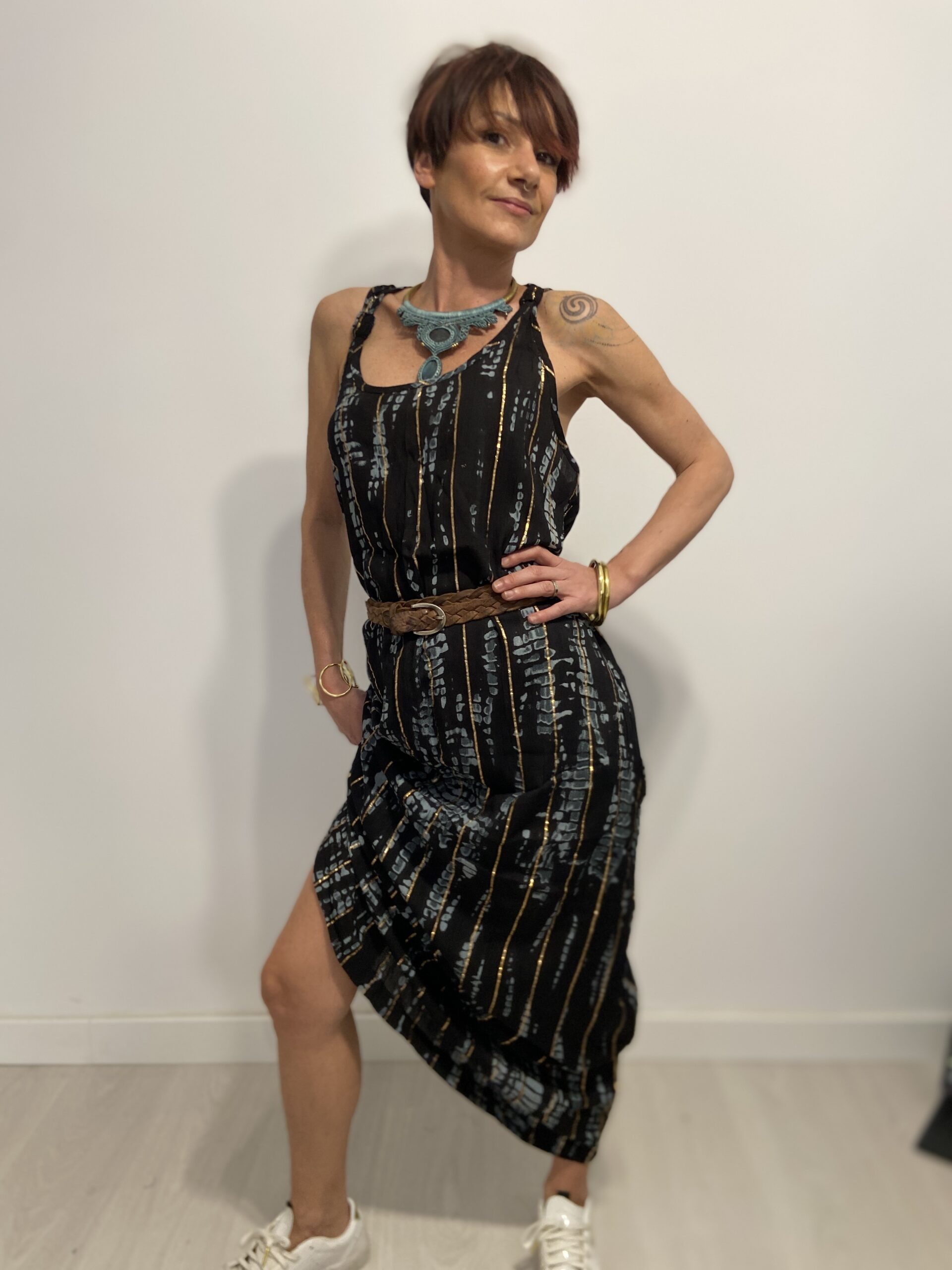 Descubre el vestido largo Boho Essence, una prenda que combina confort y estilo. Fabricado al 100% en rayón, este vestido es ideal para los días calurosos gracias a su ligereza y frescura. Los tirantes finos y la silueta larga ofrecen un ajuste sencillo pero elegante, mientras que los bolsillos laterales agregan un toque práctico sin perder el estilo. Disponible en talla única, se adapta perfectamente a diferentes tipos de cuerpo, ofreciendo una comodidad y fluidez excepcionales.