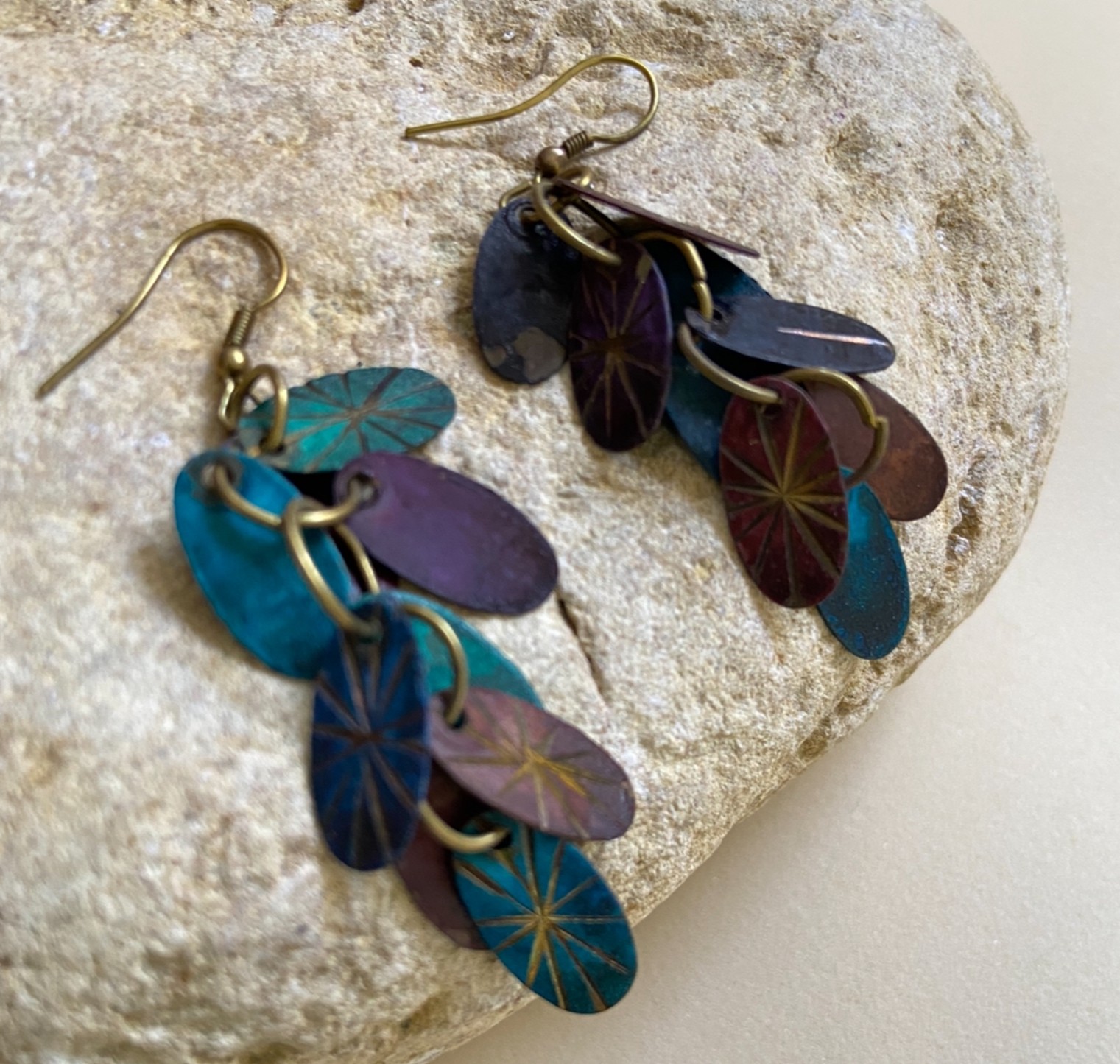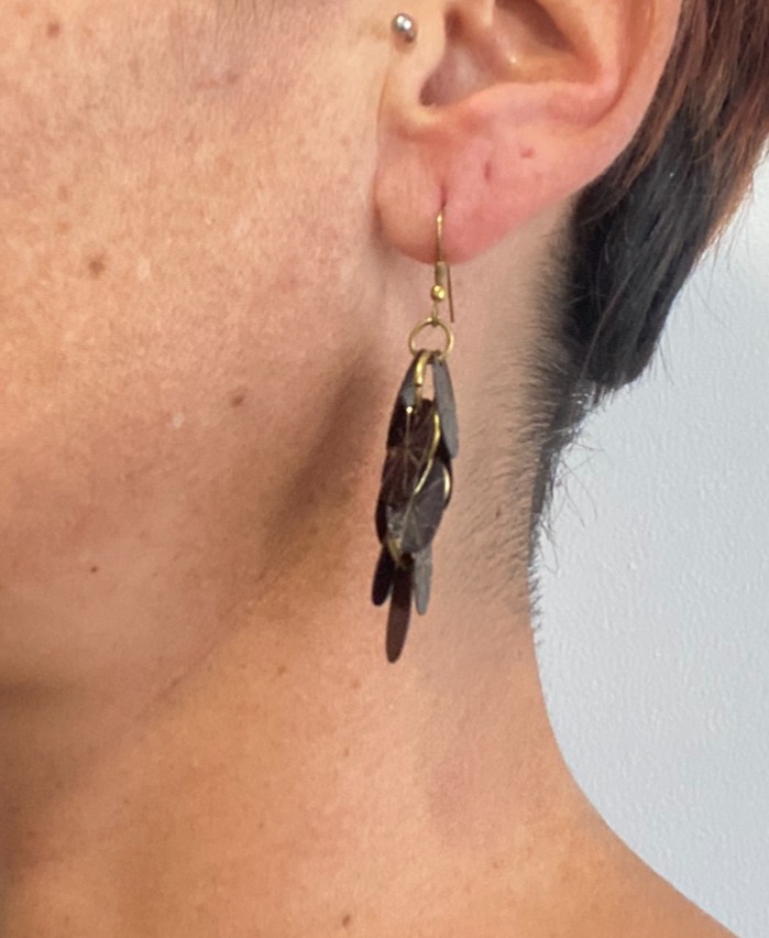 Pendientes de la línea ORIENTE en metal de color, con colgantes ovalados en forma de hojas.