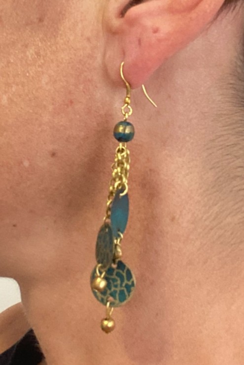 Hechos a mano en India, estos pendientes combinan tradición y modernidad, convirtiéndolos en el accesorio perfecto para quienes buscan un look exótico y sofisticado.