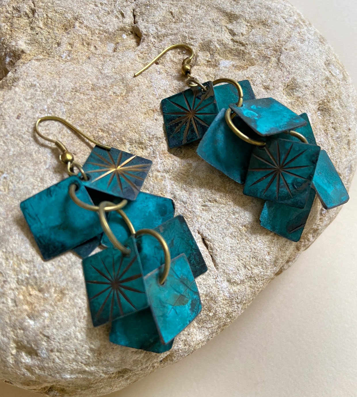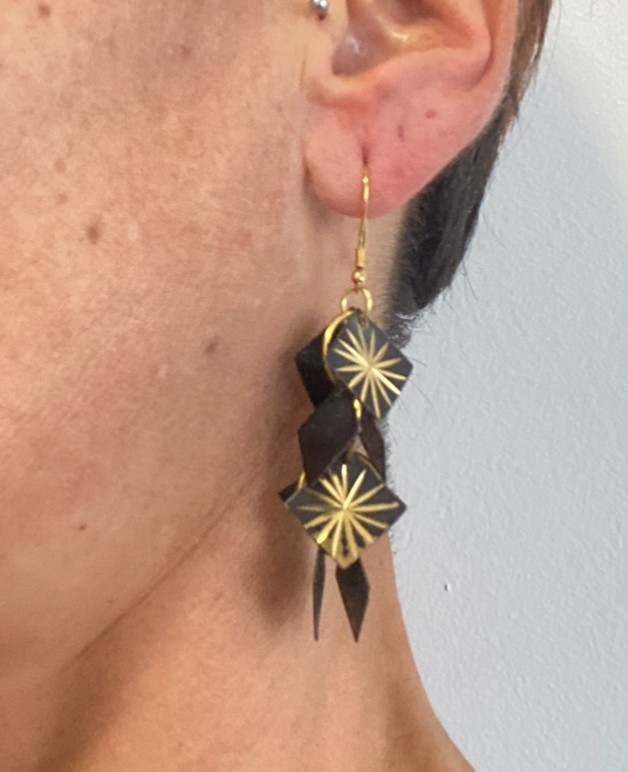 Estos pendientes de la línea ORIENTE son una verdadera explosión de elegancia, con una cascada de colgantes en forma de rombo.