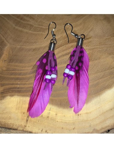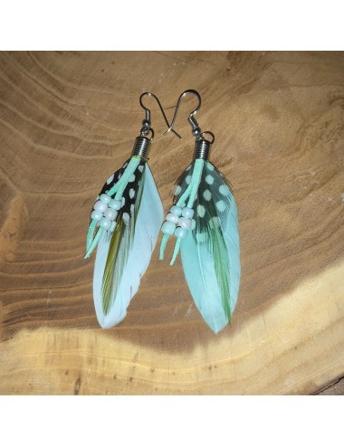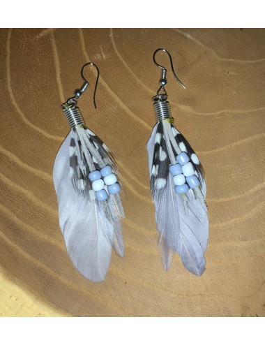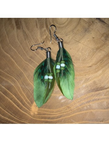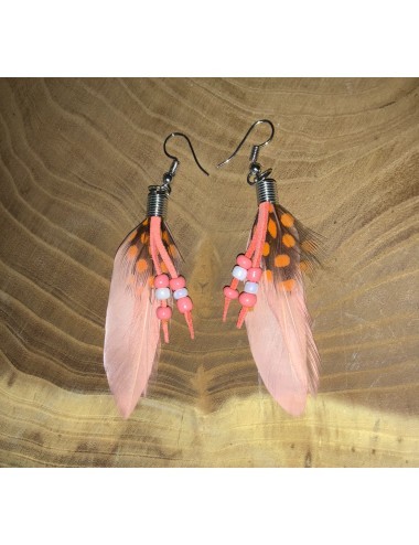 Descubre nuestros elegantes pendientes colgantes, caracterizados por una delicada pluma beige y dos hileras de cuentas en paleta de colores.
