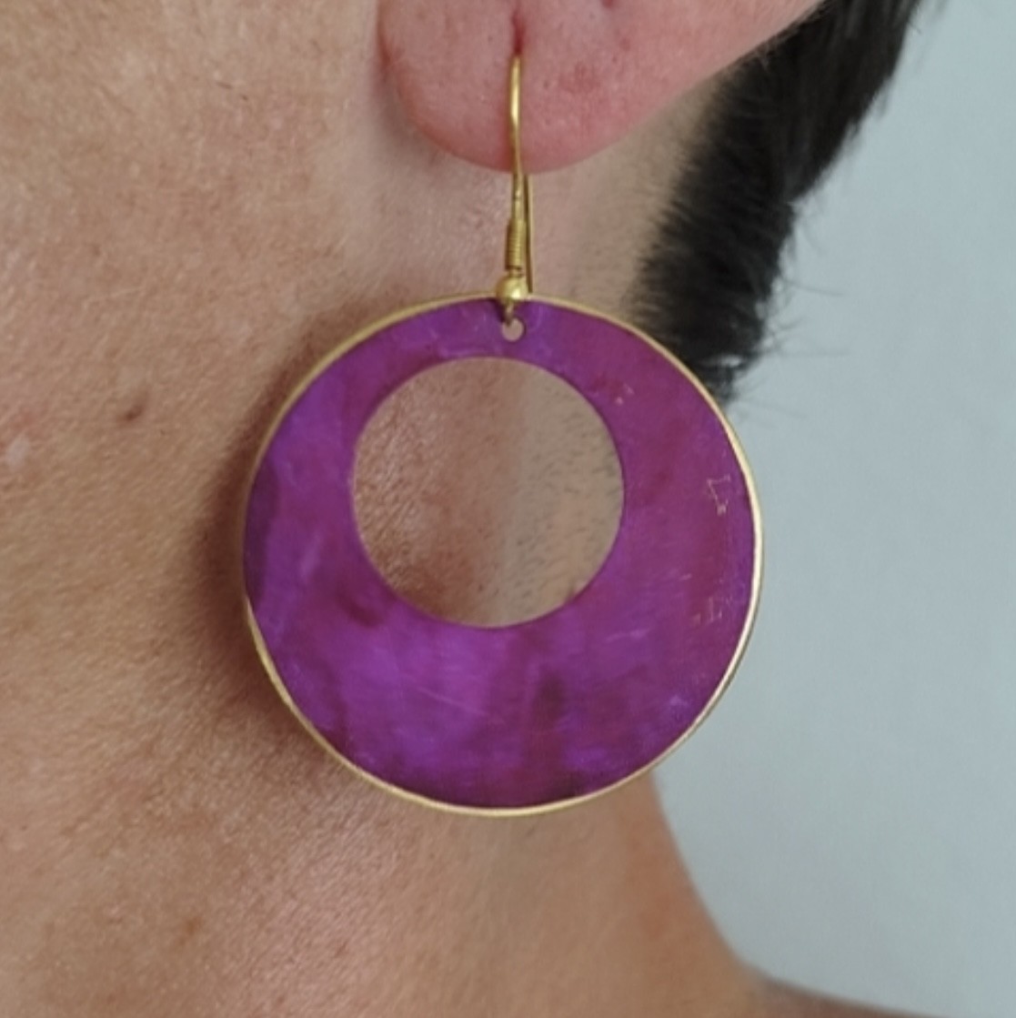 Descubre nuestros hermosos pendientes colgantes circulares con aro central, disponibles en una variedad de colores para adaptarse a cualquier estilo y ocasión.