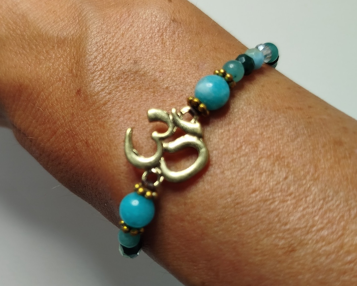 Descubre nuestras pulseras artesanales tailandesas, compuestas de perlas y un colgante OM. Disponibles en varias piedras de colores con cierre ajustable.