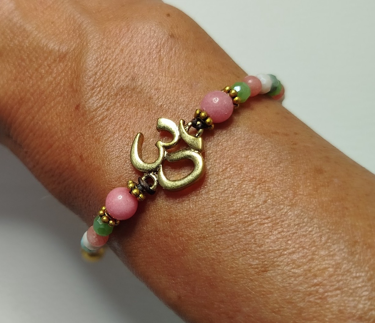 Descubre nuestras pulseras artesanales tailandesas, compuestas de perlas y un colgante OM. Disponibles en varias piedras de colores con cierre ajustable.