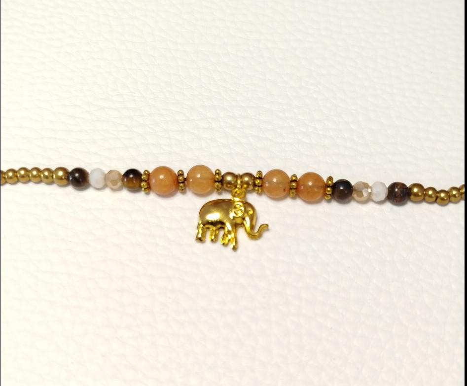 Descubre nuestras pulseras artesanales tailandesas, compuestas de perlas y un colgante Elefante. Disponibles en varias piedras de colores con cierre ajustable.