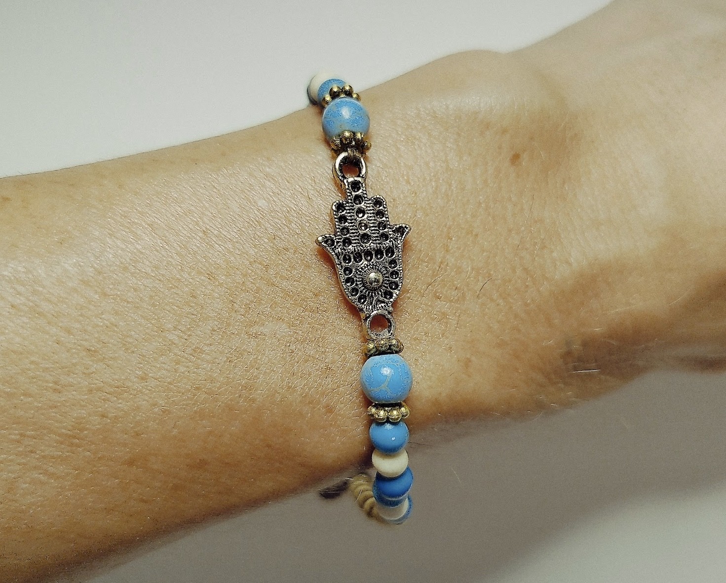 Cada pulsera está adornada con un colgante de Mano de Fátima de 1 cm, un símbolo universal de protección, buena suerte y prosperidad.