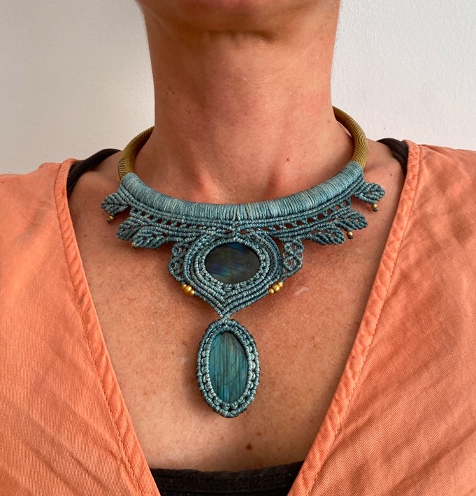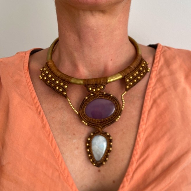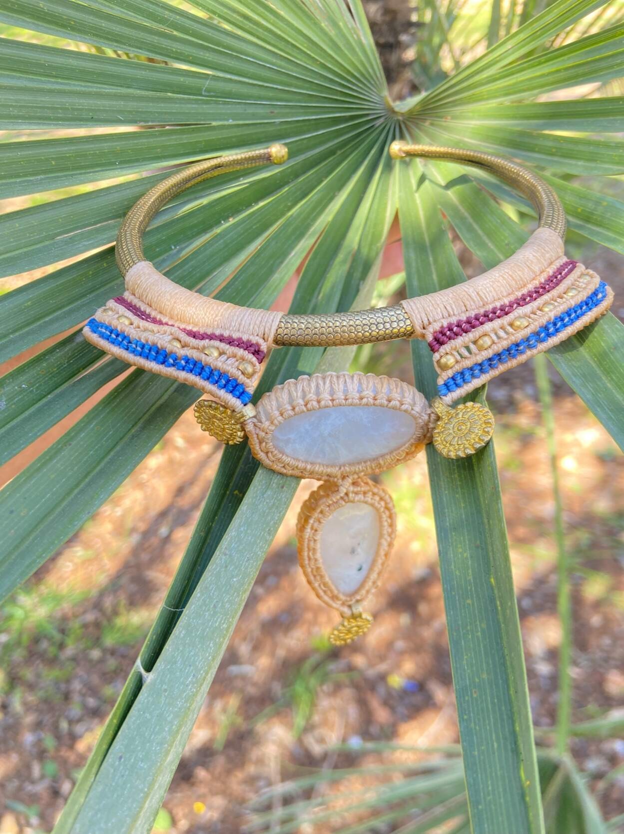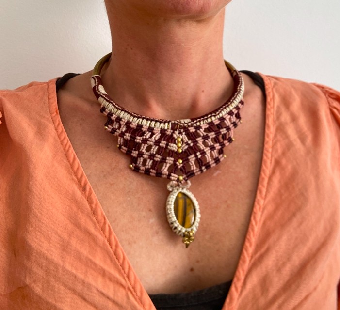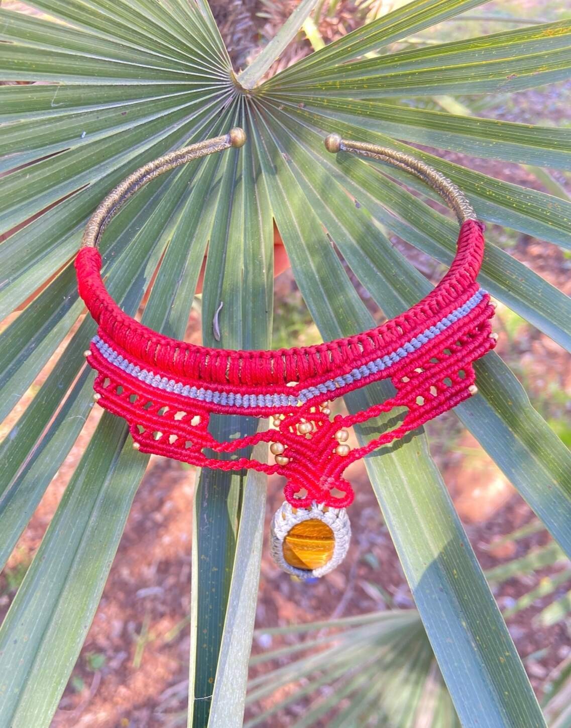 Collar choker de macramé con piedra central – Elegancia artesanal